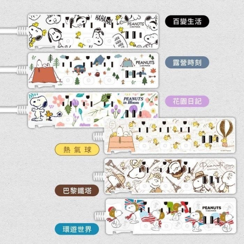 SNOOPY 史努比 PD 37W平貼式延長線 按壓式4開3插+USB延長線 1.8M/6尺 1650W 延長線 插座