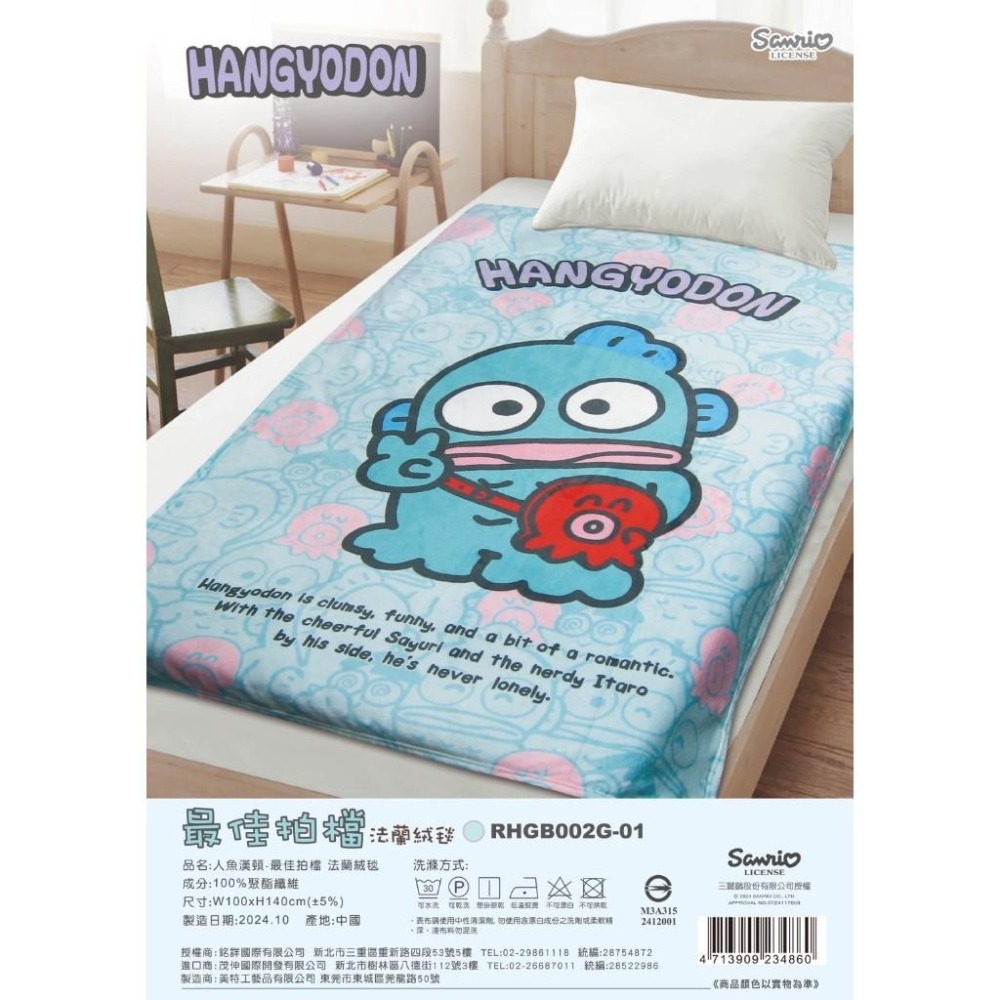 三麗鷗 人魚漢頓 醜魚 法蘭絨大毯 冷氣毯 薄毯 毛毯 毯子-最佳拍檔