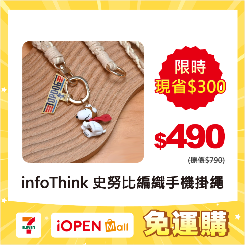 【7-ELEVEN 門市團購】infoThink 訊想科技 史努比 飛行 手機編織頸掛繩 手機掛繩 公仔吊繩