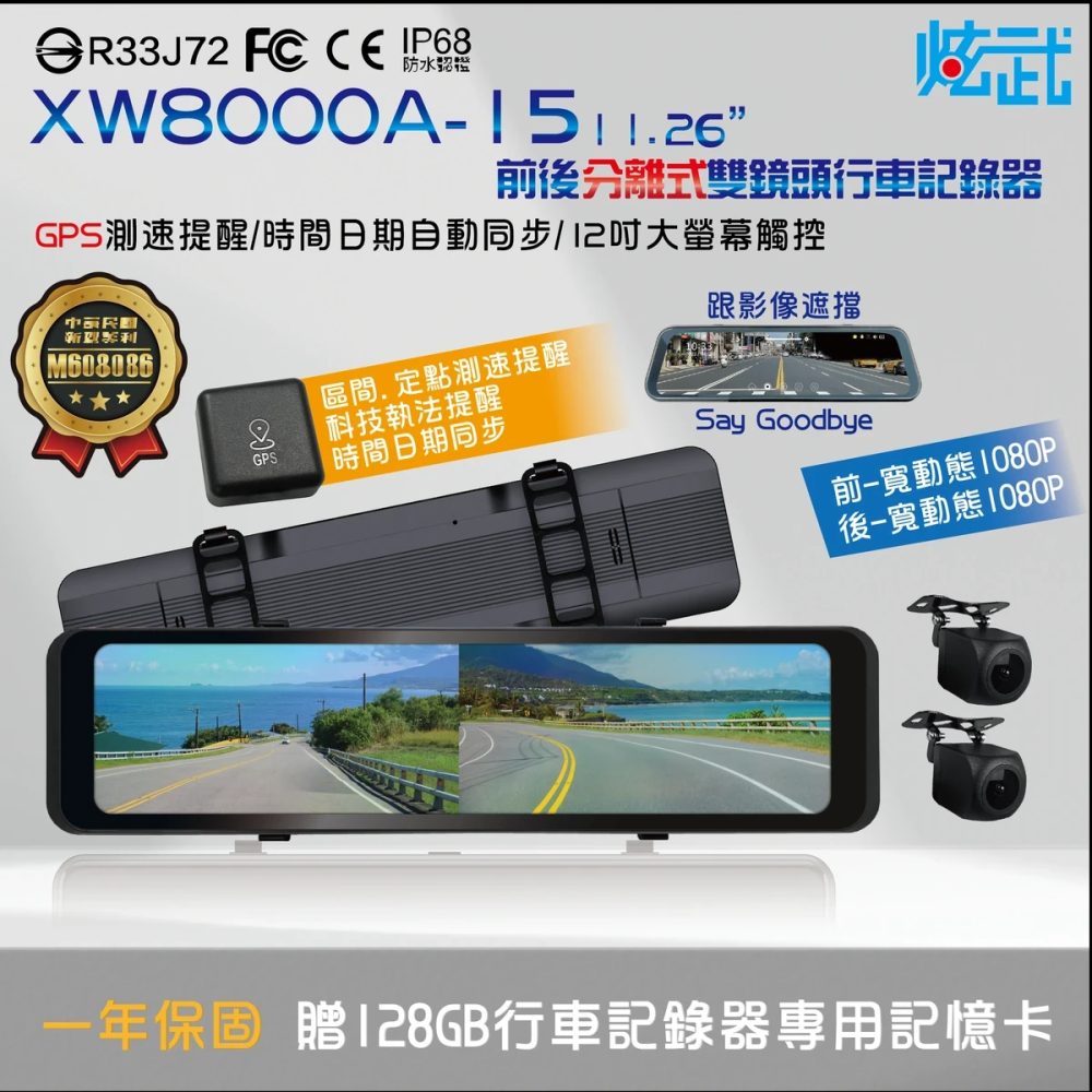 XW8000A-15 12吋 GPS 專利分離式雙鏡頭電子後視鏡