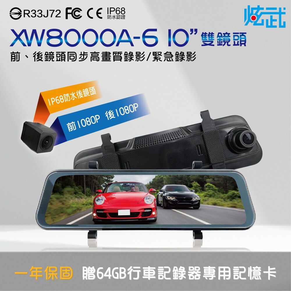 炫武 XW8000A-6 10吋電子後視鏡 前後1080P同步清晰錄影 減少盲點 倒車顯影 無水波紋