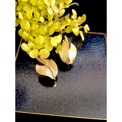 vintage jewelry Trifari 典雅刷金羽翼意象 夾式耳環 980元