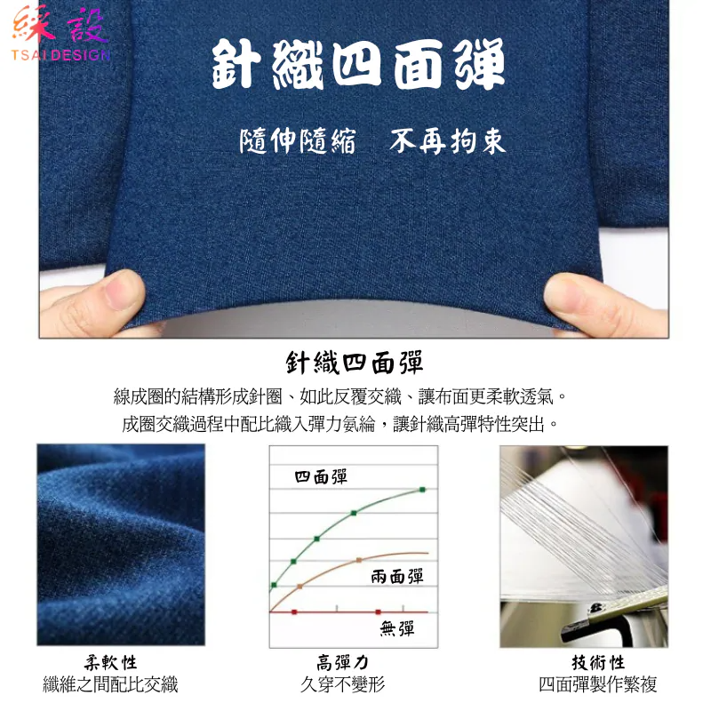 布料皆採用四面彈性織法