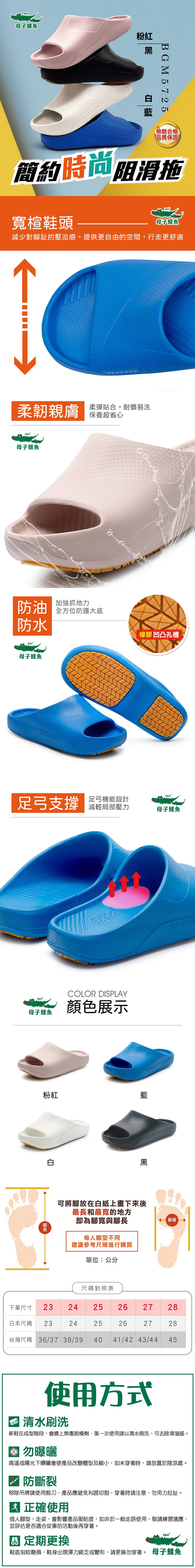 母子鱷魚 簡約時尚阻滑拖 BGM 5725|防水防油安全檢驗 寬楦超輕量|男女同款(23-28)