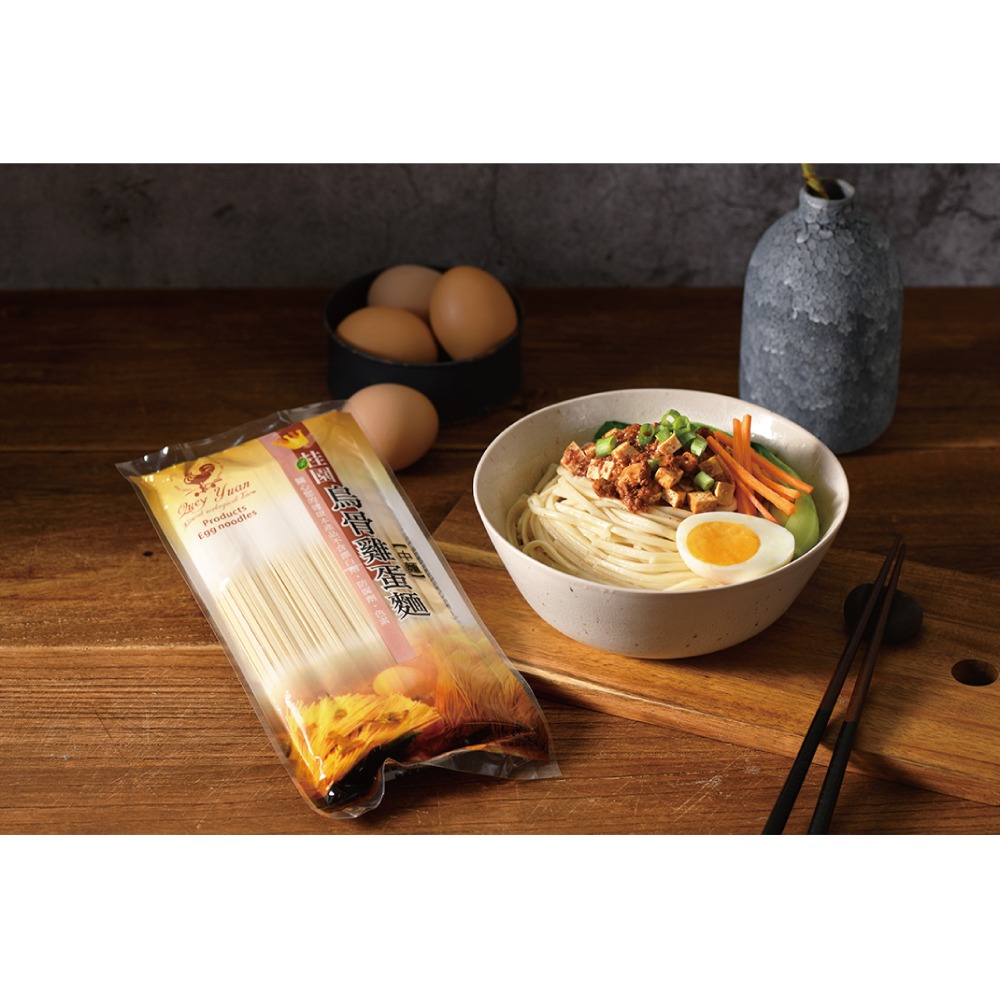 ✦ 採用桂園嚴選烏骨鮮雞蛋,烏骨雞蛋蛋黃香氣濃郁使麵條富含蛋香。