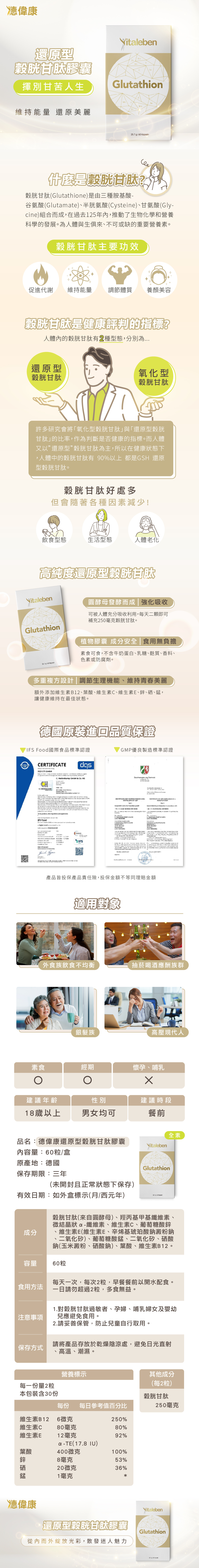 【德風】德偉康還原型穀胱甘肽膠囊*1盒共60顆(GSH+維生素B12+C+E+葉酸+鋅)