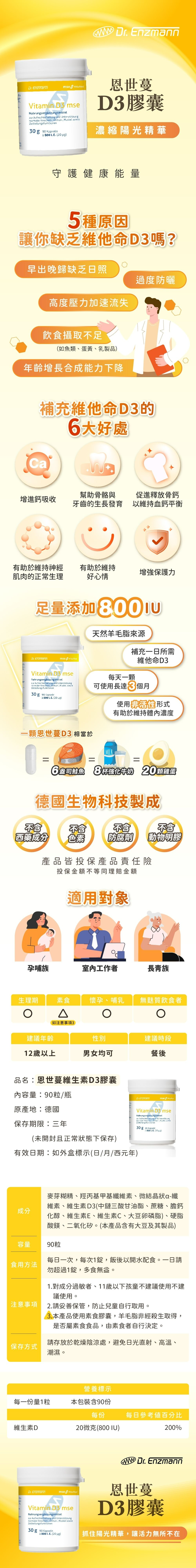 【德風】恩世蔓維生素D3膠囊*1瓶共90顆(德國維他命D3/Vitamin D3)