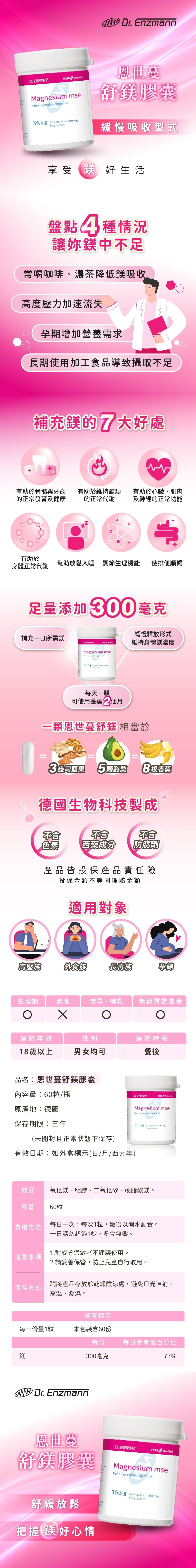 【德風】恩世蔓舒鎂膠囊(60顆/瓶)(德國緩釋型鎂)