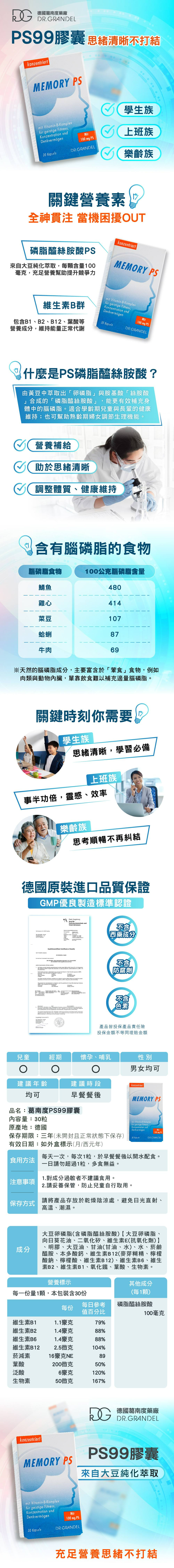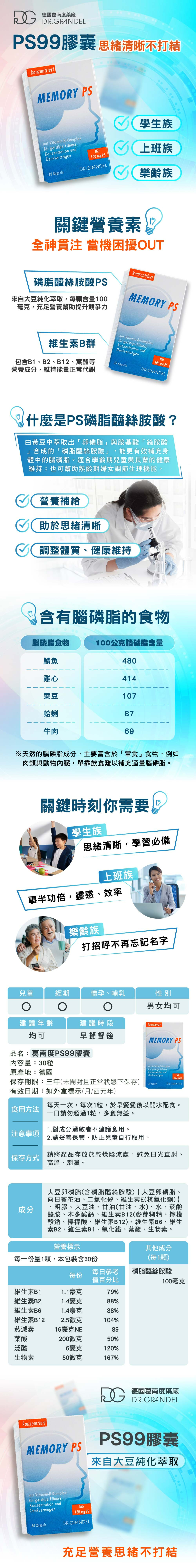 【德風】葛南度PS99膠囊*1盒共30顆(腦磷脂/磷脂醯絲胺酸/大豆卵磷脂)