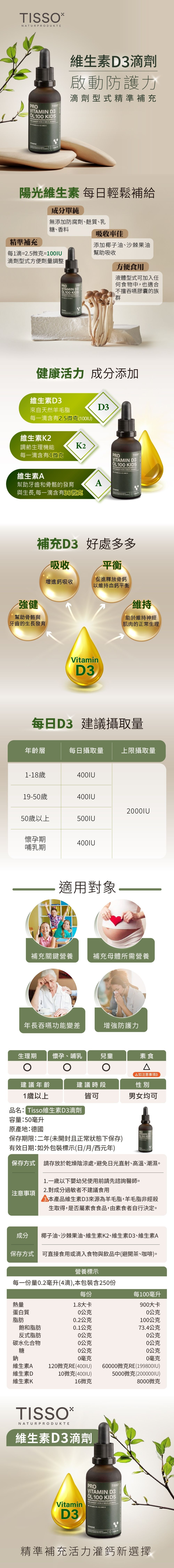 【德風】Tisso維生素D3滴劑(50ml/瓶) (兒童維他命D3/Vitamin D3)