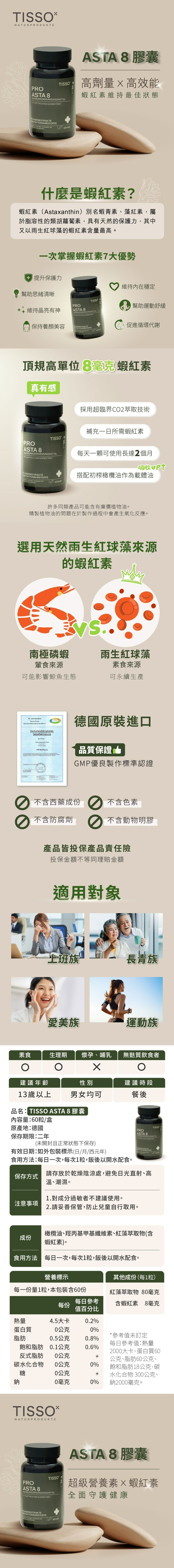 【德風】Tisso ASTA 8膠囊(60顆/瓶) 蝦紅素