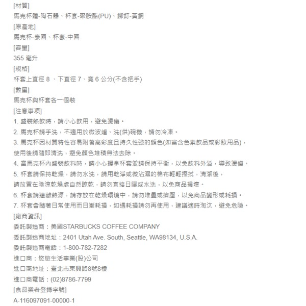 商品說明與注意事項請見商品杯身或底部、杯內、外包裝的標示或商品說明書。