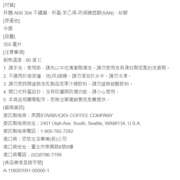 商品說明與注意事項請見商品杯身或底部、杯內、外包裝的標示或商品說明書。