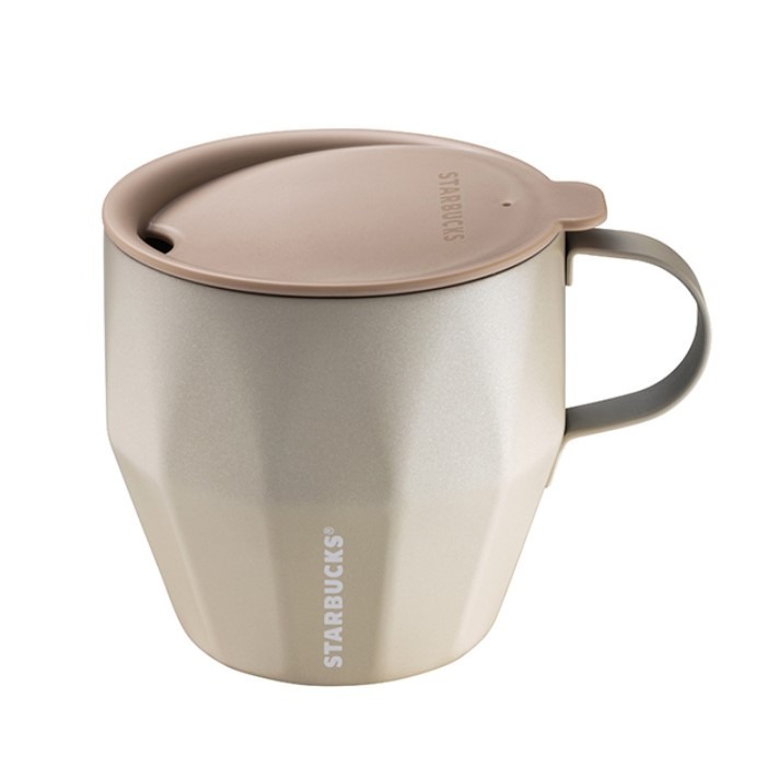 星巴克米灰色不鏽鋼把手杯