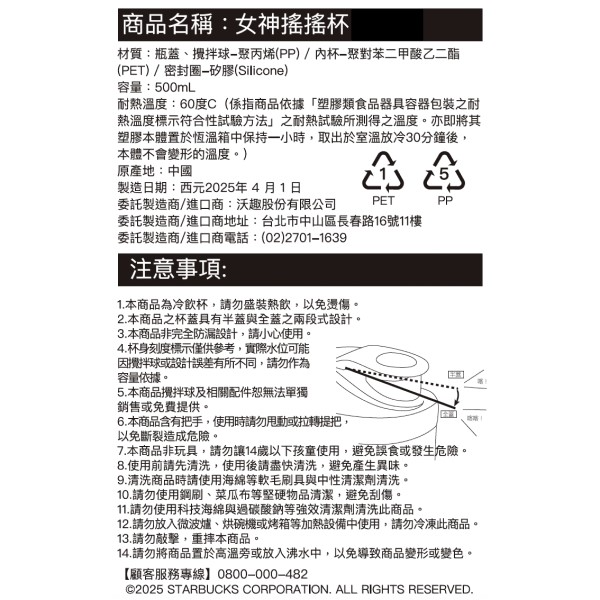 商品說明與注意事項請見商品杯身或底部、杯內、外包裝的標示或商品說明書。