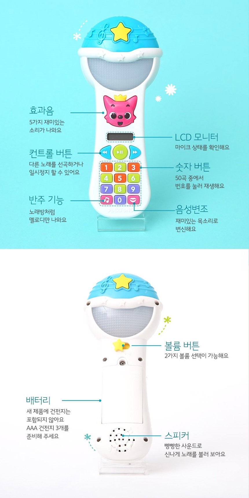 Baby shark 鯊魚寶寶 麥克風-50首歌曲 玩具 禮物(藍)