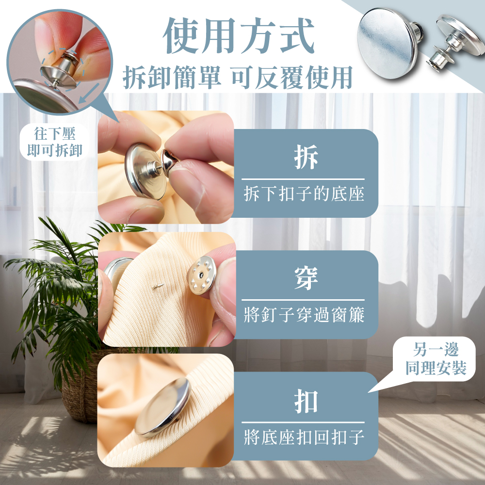 這款窗簾磁吸扣內置磁鐵,輕鬆固定窗簾,維持開闔狀態更整齊。