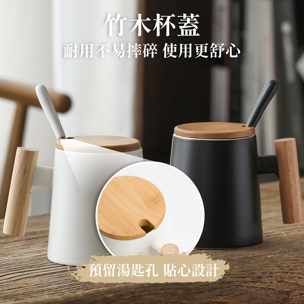 竹製杯蓋,防塵又能保溫,設有留口設計,便於放置勺子,保持整潔。