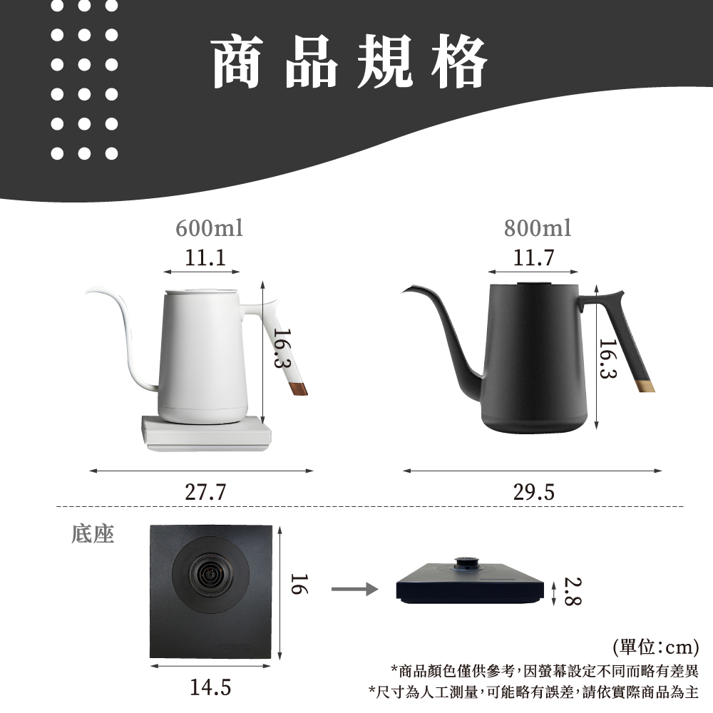 需要注意的是,600ml和800ml兩種容量的溫控壺並不能共用相同的加熱底座。