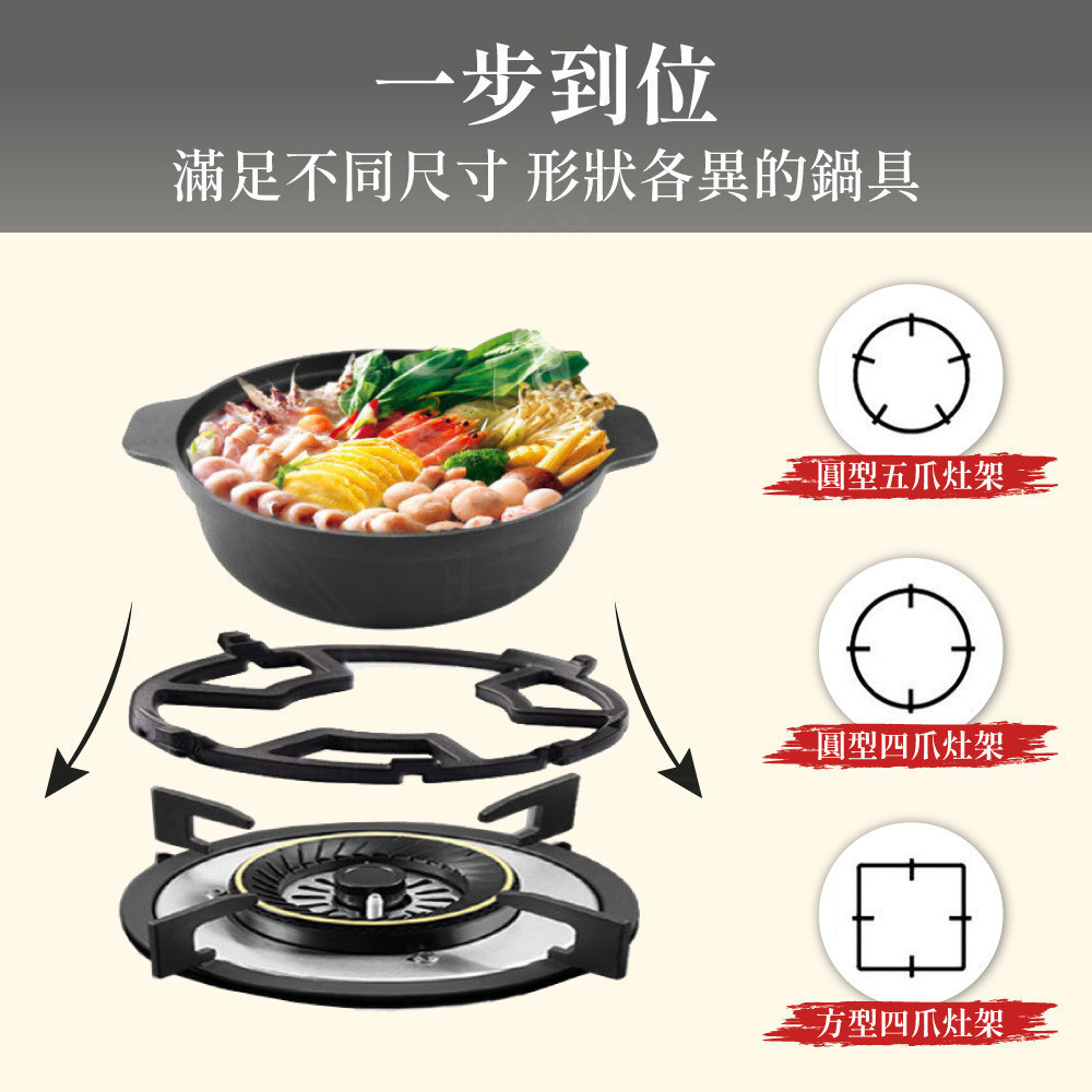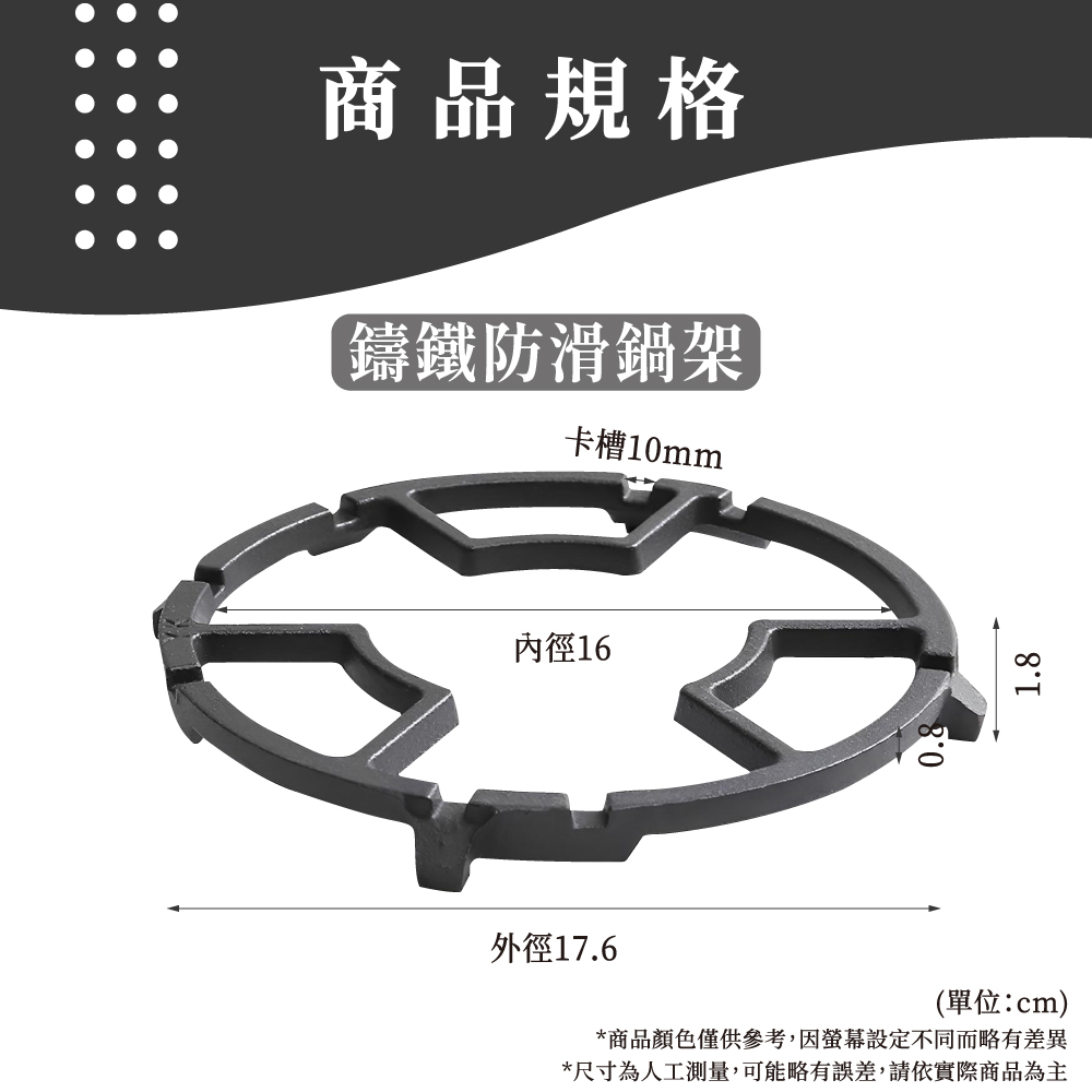 瓦斯爐防滑支架,讓小鍋具平穩固定,優質鑄鐵材質一體成形,堅固又耐用。