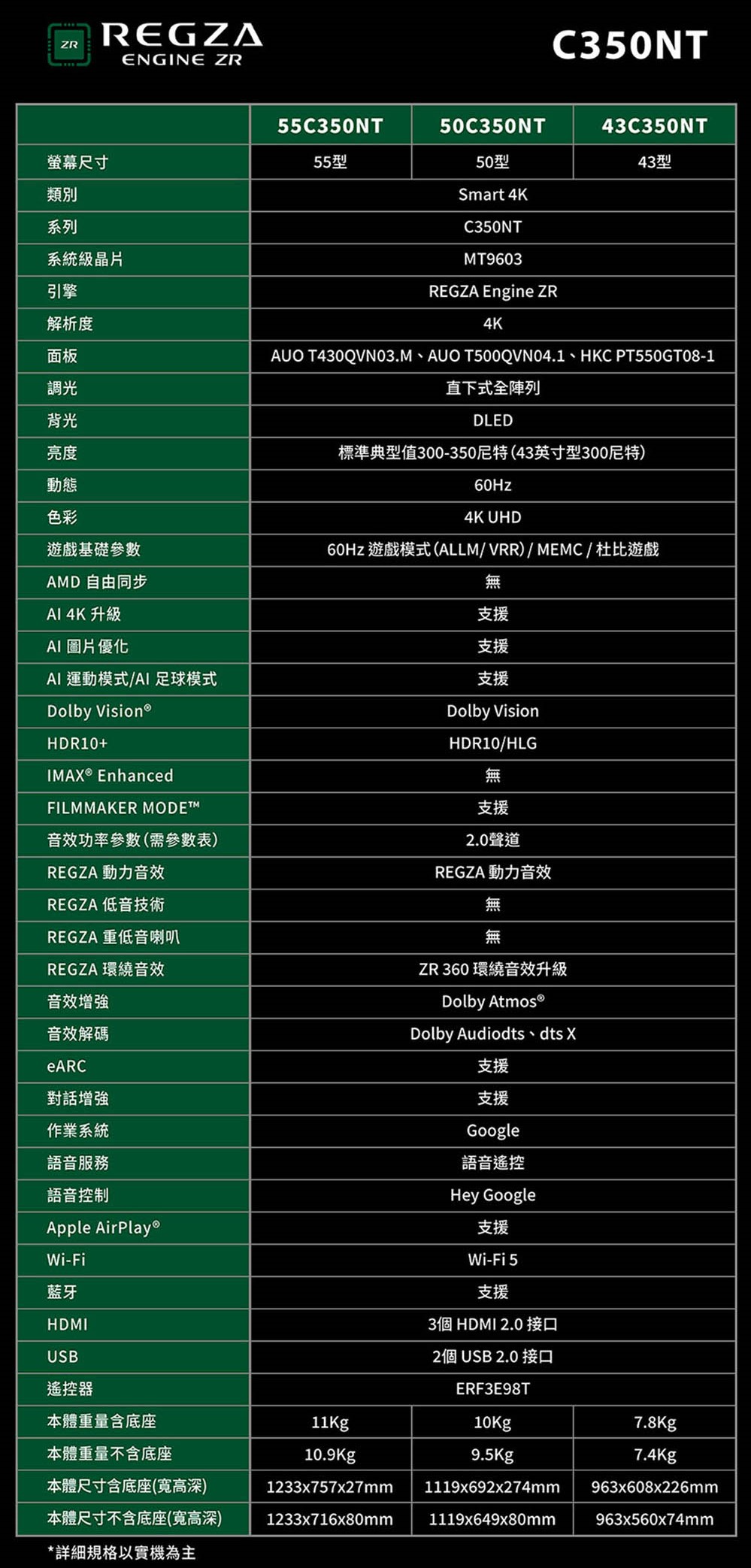 TOSHIBA東芝 REGZA 50型4K Google TV液晶顯示器(50C350NT)(含基本安裝)