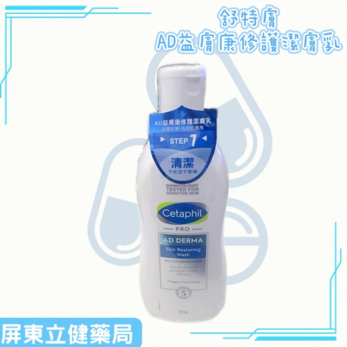 (屏東立健藥局)舒特膚Cetaphil AD益膚康修護潔膚乳 清潔肌膚 295ml/瓶