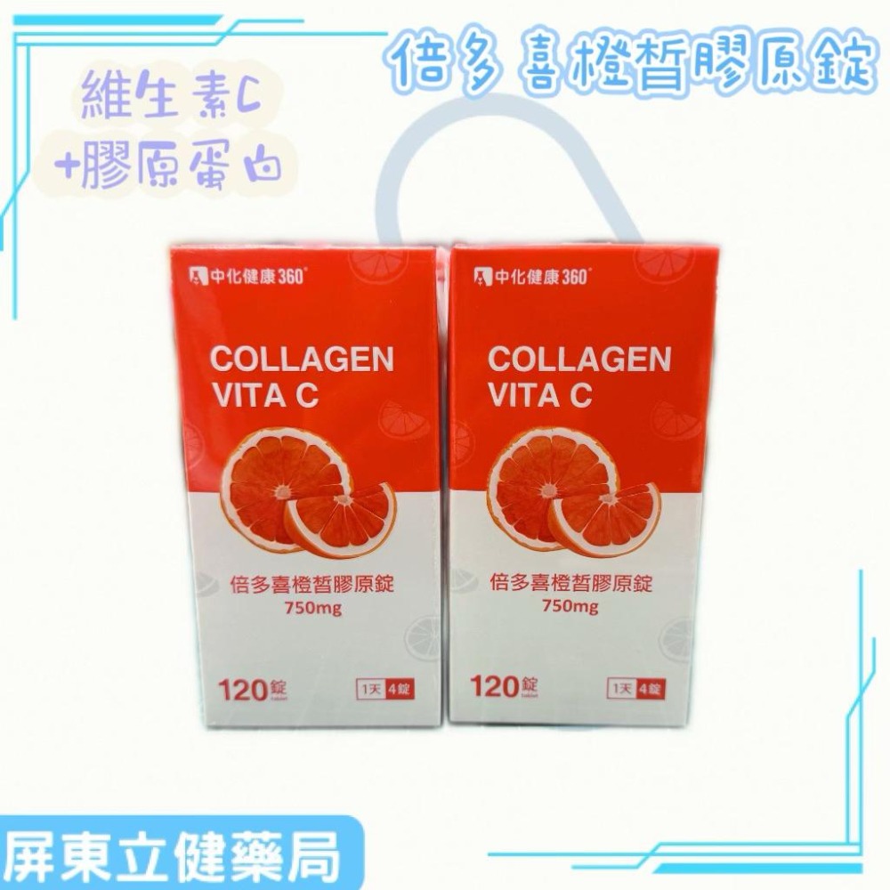 (屏東立健藥局)中化健康360 倍多喜橙晳膠原錠 維生素C+膠原蛋白 120錠/瓶