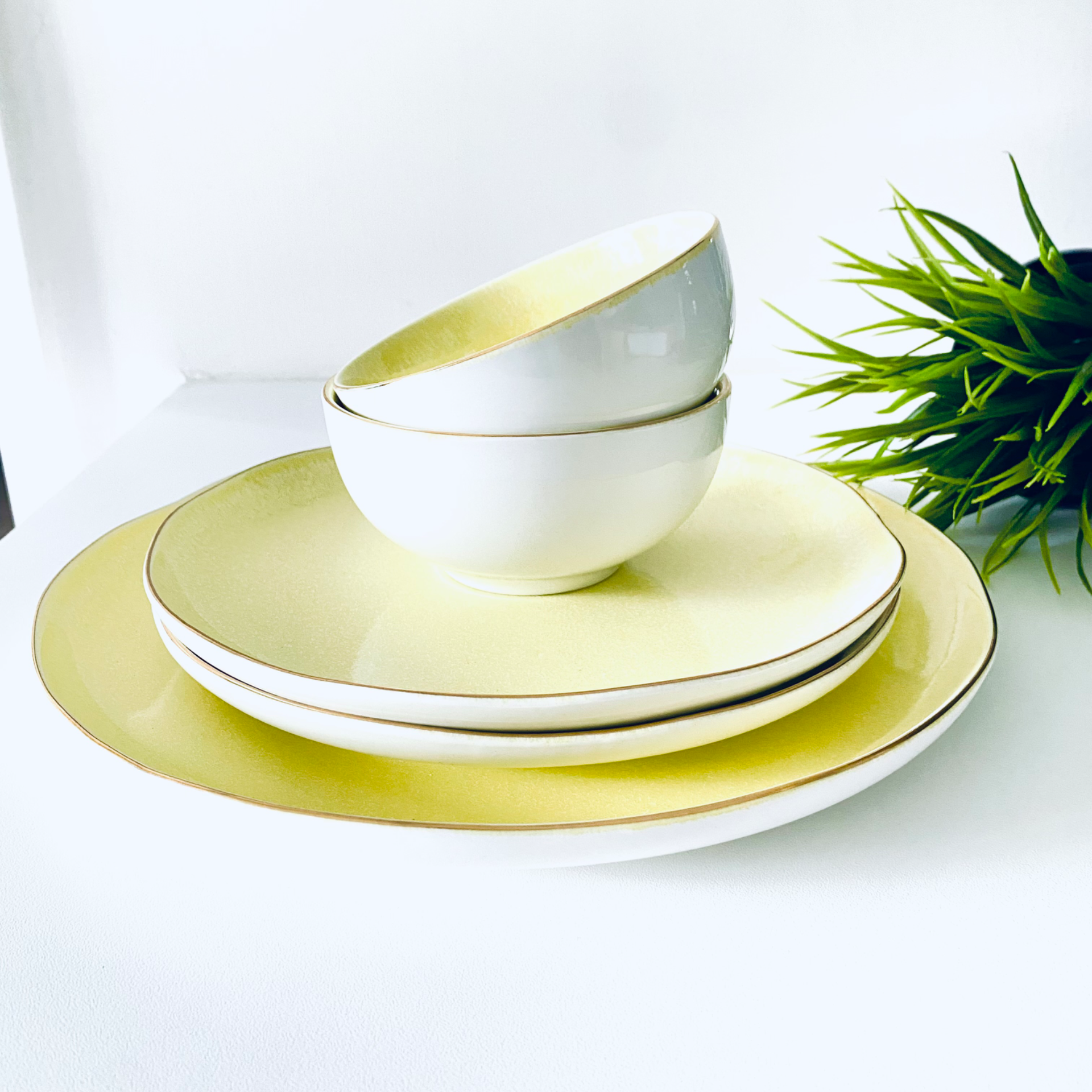 讓快樂一起上餐桌!【鵝毛黃_幸福餐盤組】療癒幸福感爆棚 景德鎮瓷器 質感碗盤組 餐具