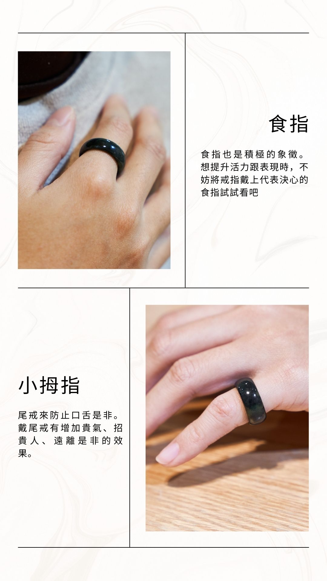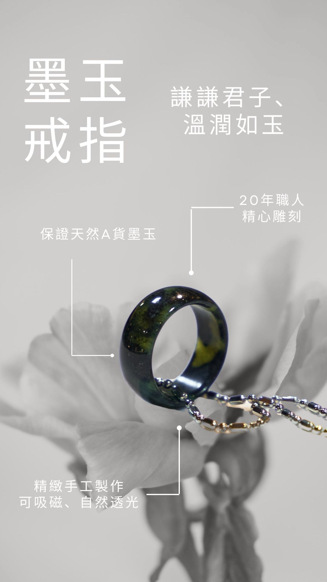 - 墨玉戒指將奪人眼目,不僅能提升您的品味,更展現您對品質和獨特風格的追求。