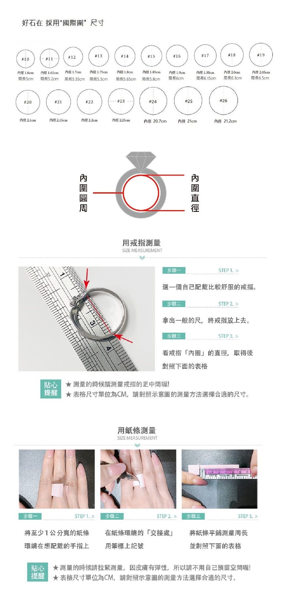 |按照下列步驟測量您的戒指尺寸