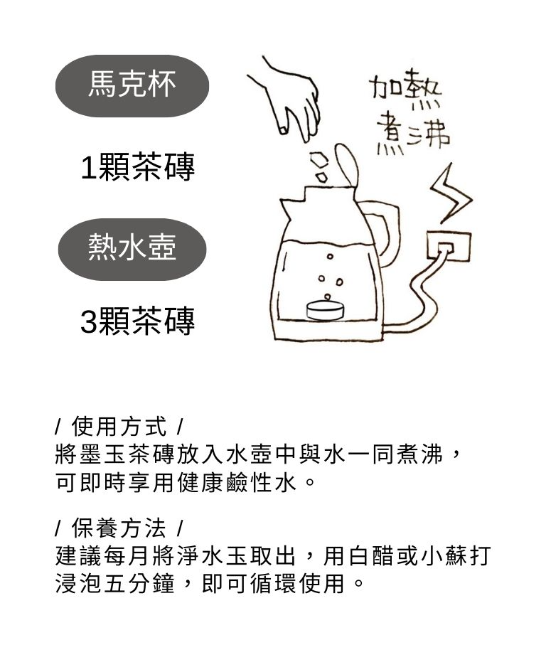 熱水壺:4顆(將方塊放入水壺中與水一同煮沸,可即時享用健康鹼性水。)