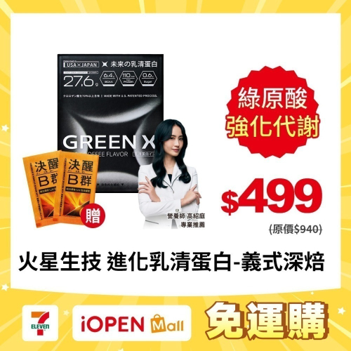【7-ELEVEN門市團購】火星生技 GreenX進化乳清蛋白-義式深焙風味 40gX4包/盒 送決醒對策B群