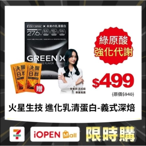 【限時購】火星生技 GreenX進化乳清蛋白-義式深焙風味 40gX4包/盒 送決醒對策B群