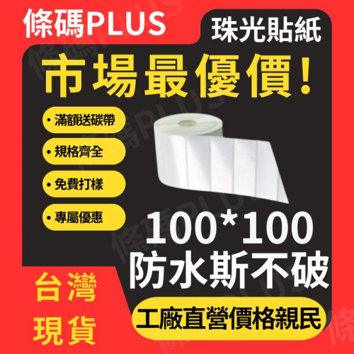【珠光貼紙.100*100mm.485張】防水斯不破 送碳帶 台灣貨 條碼貼紙 標籤貼紙 冷凍食品 藥品化妝品