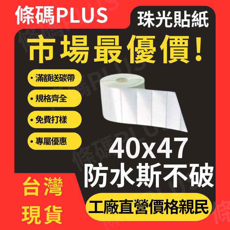 【珠光貼紙.40*47mm.1000張】防水斯不破 送碳帶 台灣貨 條碼貼紙 標籤貼紙 冷凍食品 藥品化妝品