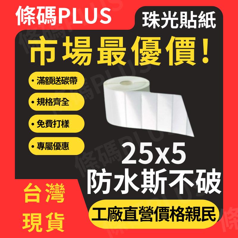 【珠光貼紙.25*5mm.6250張】防水斯不破 送碳帶 台灣貨 條碼貼紙 標籤貼紙 冷凍食品 藥品化妝品