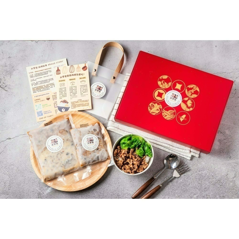 三寶爸秉持要給大家最「健康」的食物,採用100%純橄欖油,加上嚴選的新社黑早冬菇,放入台灣溫體豬,完美的肥瘦比3:7,加入台灣紅蔥頭及香豬油炒製而成的油蔥酥(不加任何化學添加物),由三寶爸純手工炒製而成,造就口感滑順、美味可口的香菇肉燥。