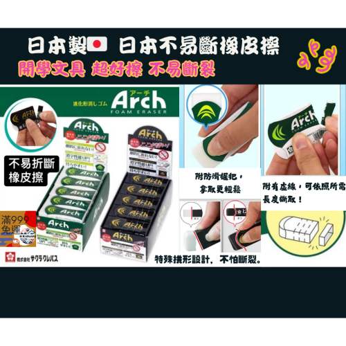 【現貨】【日本製🇯🇵】櫻花牌 Arch 弧形橡皮擦|好擦不易斷 kitty橡皮擦 開學文具 小學生橡皮擦