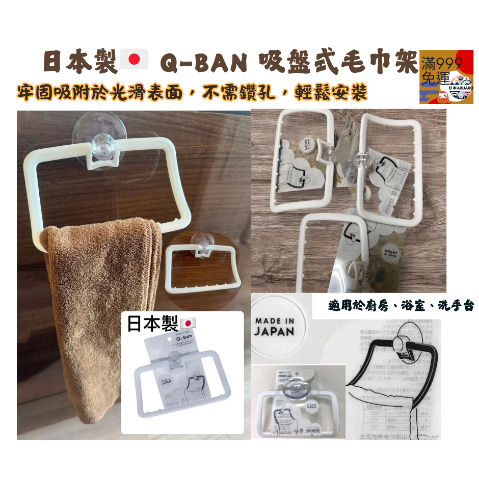 【現貨】【正品】日本製🇯🇵 Q-BAN 吸盤式毛巾架 毛巾架 抹布架 毛巾收納 收納架 吸盤式毛巾架 浴室收納