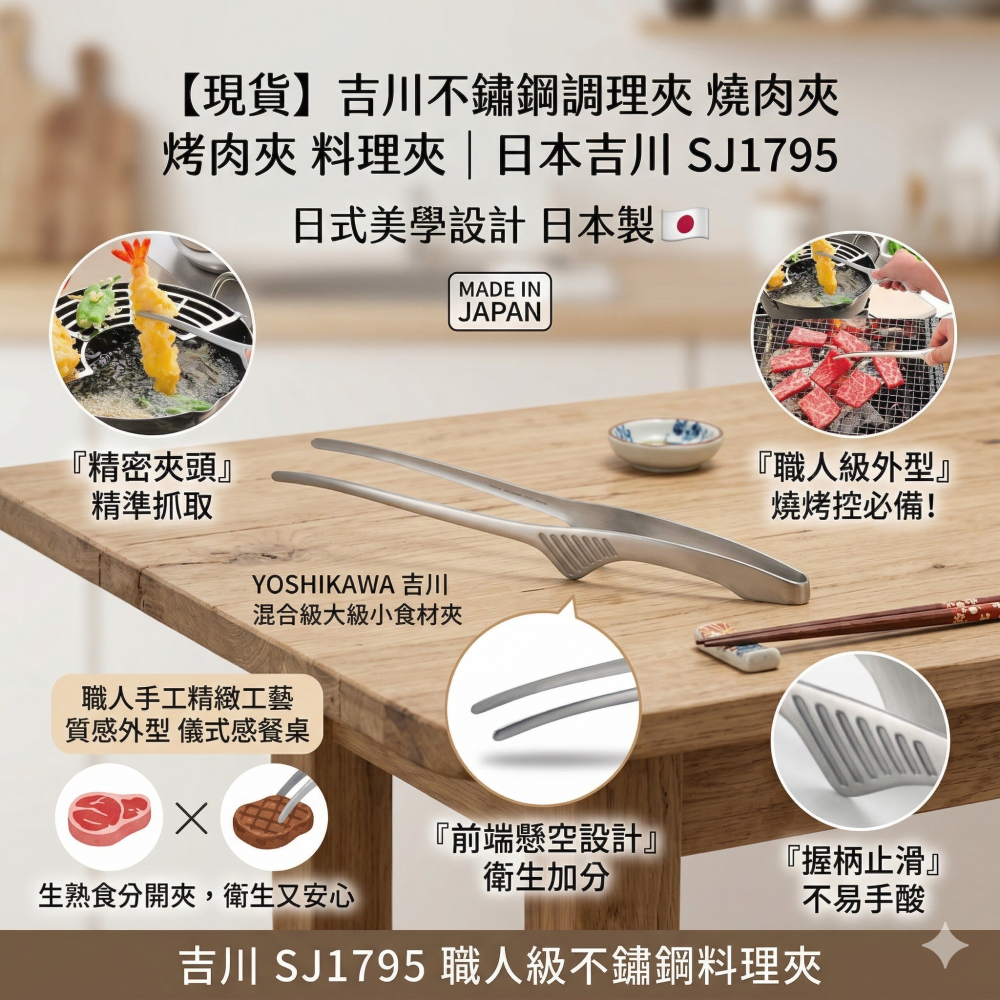 【現貨】【日本製🇯🇵 】 吉川不鏽鋼調理夾 燒肉夾 烤肉夾 料理夾|吉川夾子 不鏽鋼夾 日本吉川SJ1795