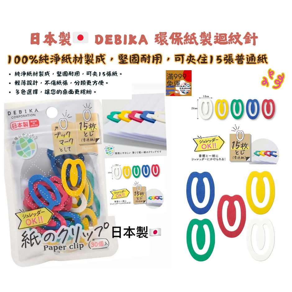 【現貨】【日本製🇯🇵】DEBIKA 紙製迴紋針|環保材質・可回收設計|迴紋針/書籤 (30入)