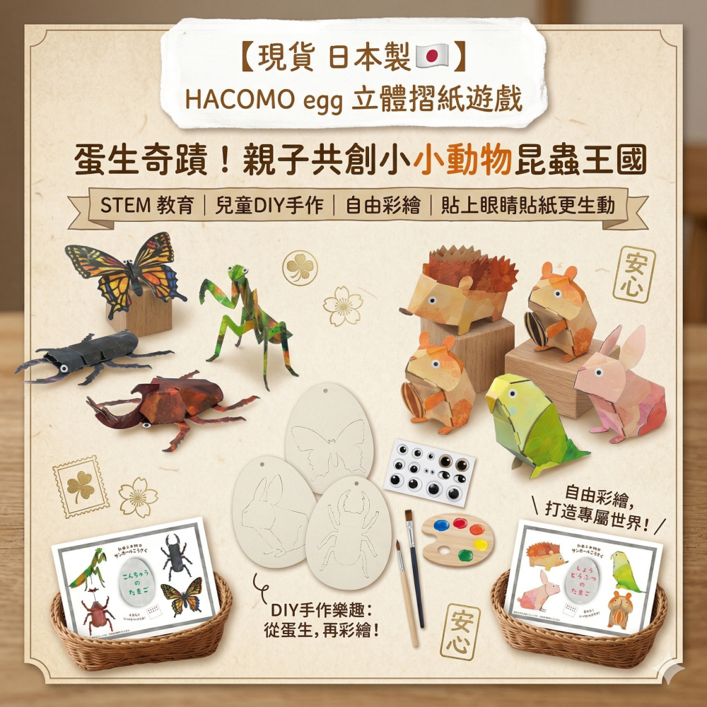 【現貨】【日本製🇯🇵】HACOMO egg 立體摺紙遊戲系列 |STEM 教育|兒童DIY手作 × 親子創意勞作兒童