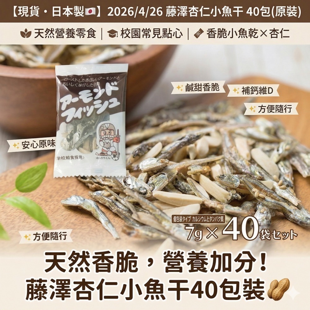 🐟 天然香脆,營養加分!藤澤杏仁小魚干 40包裝 🥜
