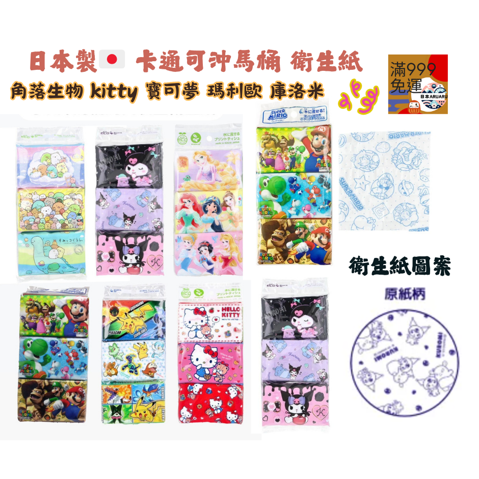 #衛生紙隨身#日本製 #口袋面紙 #可沖馬桶 #卡通面紙 #角落生物 #HelloKitty #寶可夢 #瑪利歐 #Kuromi #隨身衛生紙