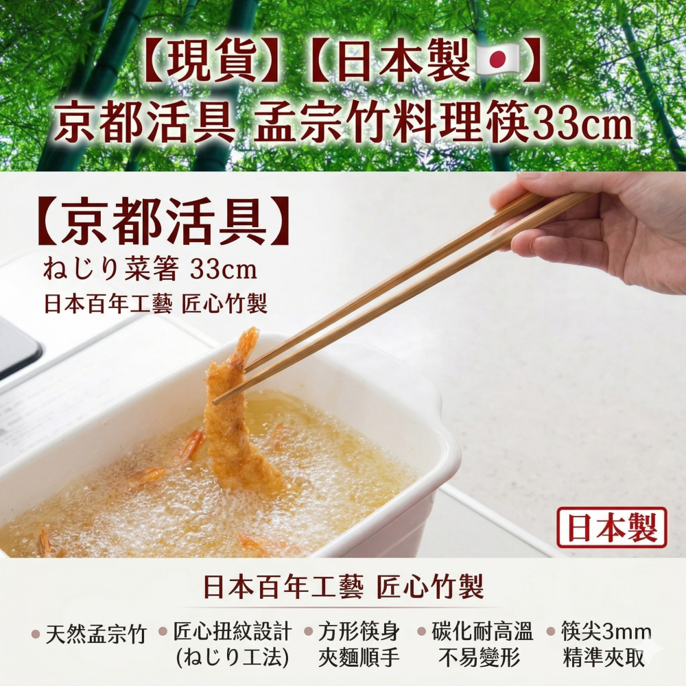 【現貨】【日本製🇯🇵】 京都活具 孟宗竹料理筷 33cm|專業長筷| 適合料理長筷耐高溫|長筷|長筷子|竹製筷子