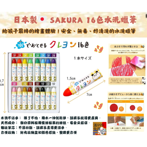 【現貨】【正品】日本製🇯🇵SAKURA 16色水洗蠟筆|水洗安全無毒|無毒蠟筆|水溶蠟筆寶寶蠟筆 日本蠟筆 可水洗蠟