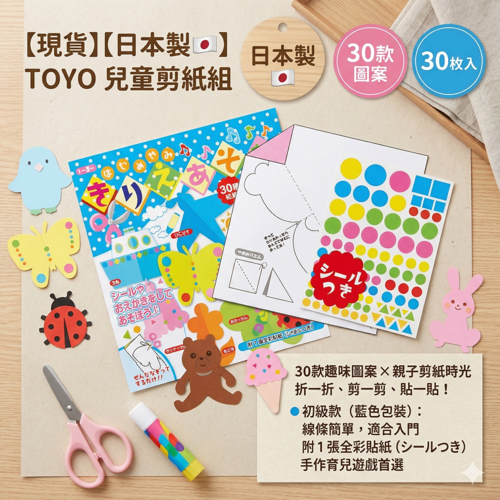 【現貨】【日本製🇯🇵】TOYO 兒童剪紙組|30款圖案|色紙×摺紙×貼紙|趣味親子手作遊戲|剪紙遊戲|日本色紙