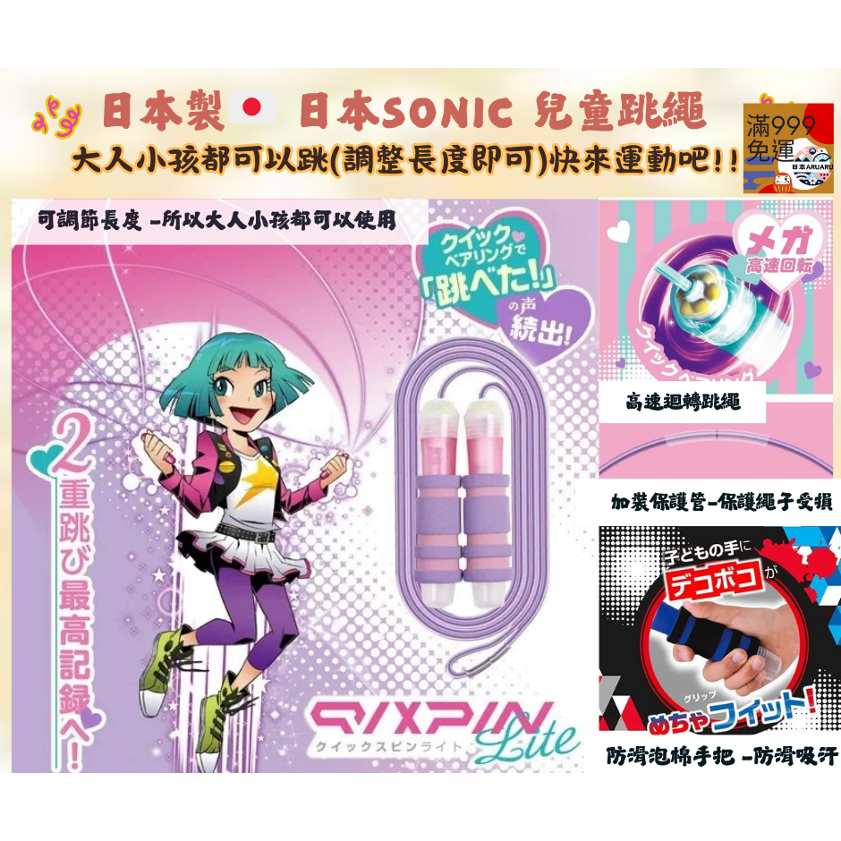 【現貨】日本品牌 Sonic|高速順暢跳繩 可調式跳繩 學生/成人皆適用 | 日本跳繩 兒童跳繩