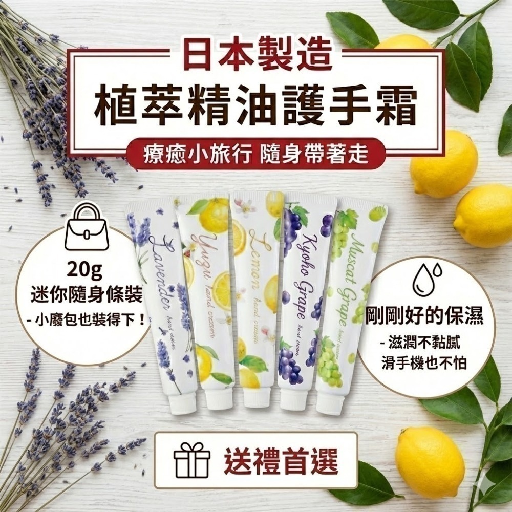 【現貨 日本製🇯🇵】植萃精油護手霜 高知柚子/瀨戶內檸檬/北海道薰衣草/富士山葡萄 迷你護手霜 |隨身護手霜
