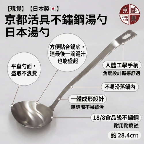 【現貨】【日本製🇯🇵 】京都活具不鏽鋼湯勺 日本湯勺 不鏽鋼湯勺 料理湯匙 料理勺 湯勺 不銹鋼勺子 不銹鋼勺